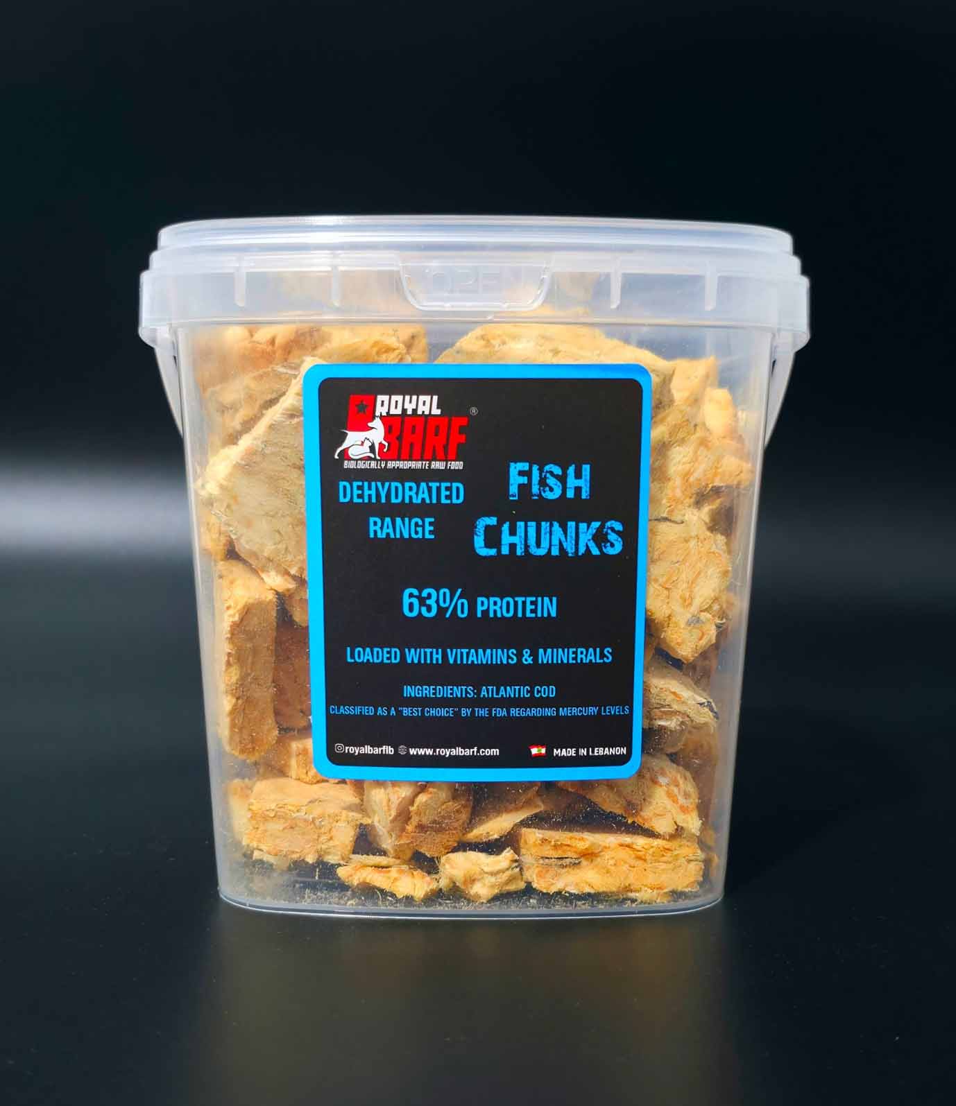 Royal BARF Fish Chunks are made from 100% Atlantic cod—gently dehydrated to lock in flavor and nutrients. These high-protein, omega-3 rich bites support skin health, a shiny coat, joint function, and cognitive well-being. With no additives or fillers, Fish Chunks are a clean, species-appropriate treat that aligns perfectly with the raw feeding philosophy. Ideal for both dogs and cats, they offer a natural, minimally processed way to reward or nourish your pet.
