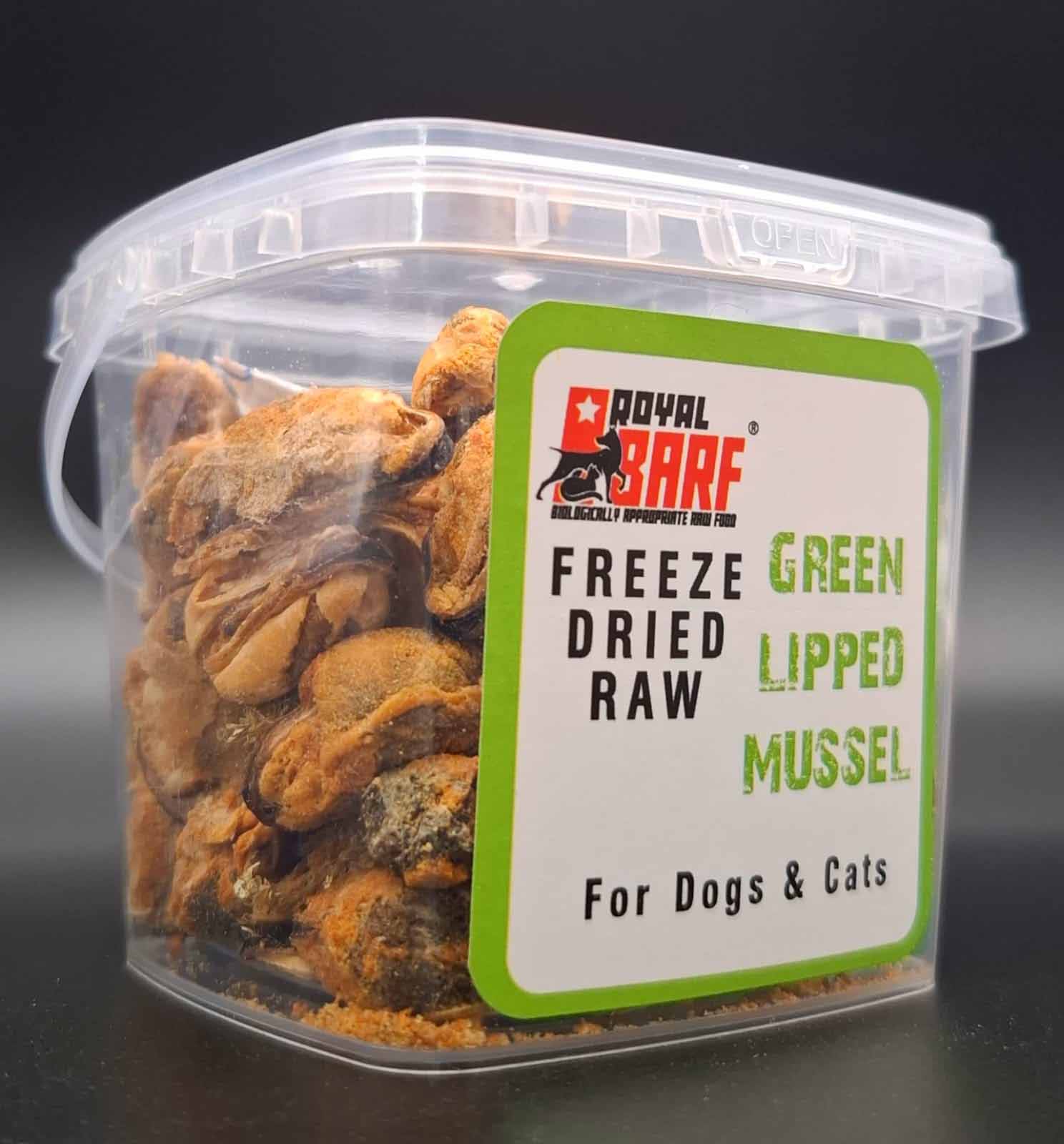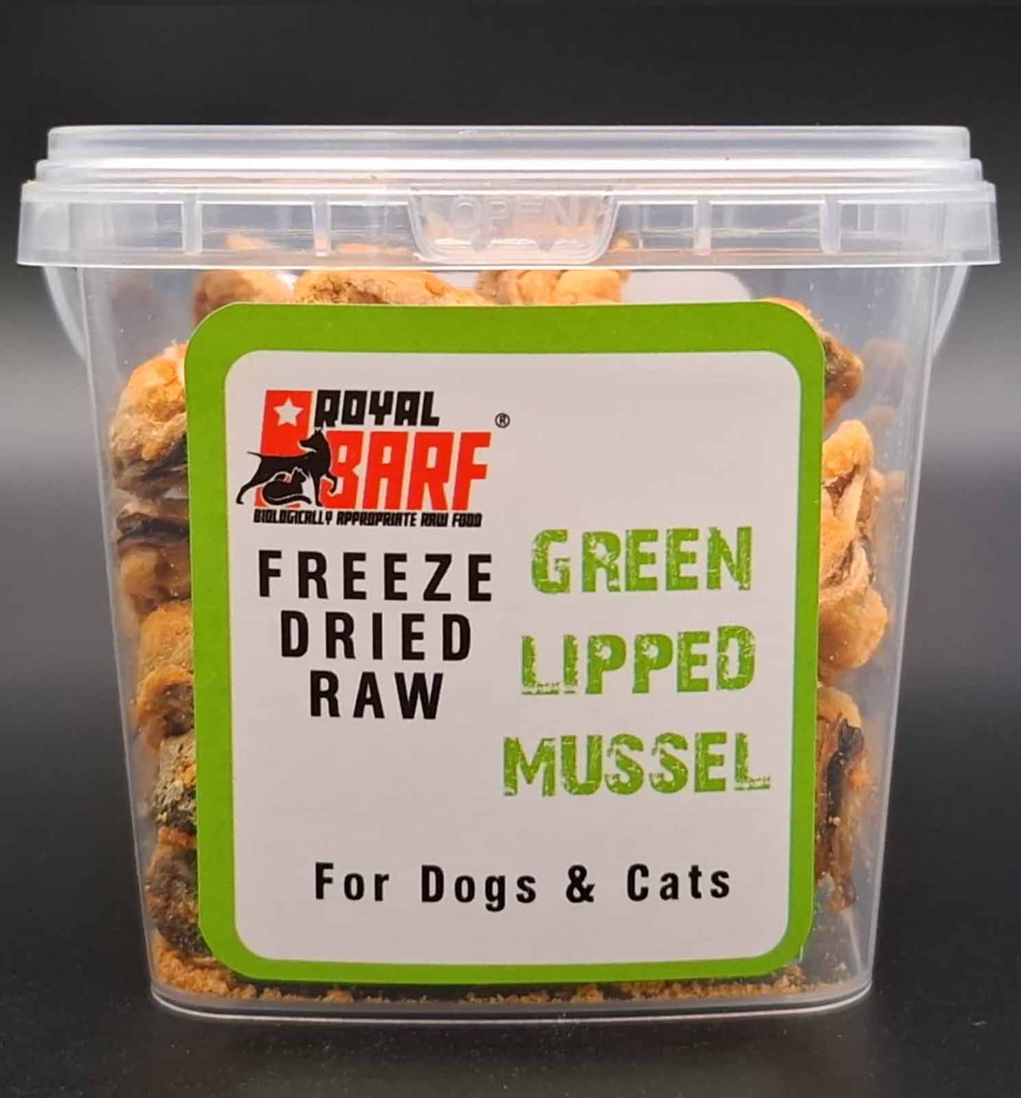 Royal Barf’s Freeze-Dried Mussel treats are a nutritious and flavorful snack for your pets. Made from 100% high-quality mussels, these treats are rich in omega-3 fatty acids, vitamins, and minerals that support joint health, skin and coat condition, and overall well-being. The freeze-drying process preserves the natural flavor and nutrients, ensuring a tasty and healthy treat without the need for additives. Ideal for training or as a special reward, these treats are easy to handle and perfect for pets of all sizes. Give your pet the best with Royal Barf’s Freeze-Dried Mussel treats, a gourmet snack they will love.