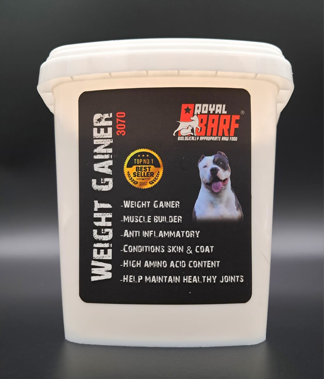 Royal Barf’s weight gainer for dogs is formulated to support healthy weight gain and muscle development. It contains high-quality proteins and essential fatty acids to boost overall health and vitality. This supplement is ideal for underweight dogs or those recovering from illness or injury. The nutrient-rich blend is designed to be easily digestible, ensuring that dogs receive the optimal nutrition they need to thrive.
